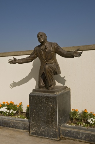 I wrote a multiple-round trivia game once when Len was recovering from surgery and couldn’t get out to trivia. It took about eight hours to put together an even halfway decent game and gave me a great appreciation for the people who write them on a regular basis. I was proud, though, of the picture round, which was “Statues in Southern California.” I included the scary Lucille Ball statue in Palm Springs (which isn’t as bad as the one they replaced in her hometown of Celoron, New York), the Jackie Robinson one at his eponymous UCLA stadium (there wasn’t yet one at Dodger Stadium–that just happened this month!), Jack Benny, Will Rogers, Tommy Trojan, and these, which you may recognize (answers at the end of the post):