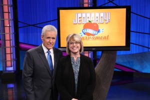 I’d actually been in a Jeopardy! audience once before–I’d gone over spring break the previous year, reserving free tickets online for me, my daughter and one of her friends. I’d taken the online test and wanted to see what the taping was like. So sitting in the audience was familiar, except that now I was watching people I’d spent the whole day with. I knew that Kaberi had fallen in love with the Spanish language on a junior year abroad in Spain and taught bilingual kindergarten in Chicago. I knew about Cory’s young son and Bill’s special-education students. I wasn’t rooting for any one of them more than the others–I just wanted them all to play well and have fun.